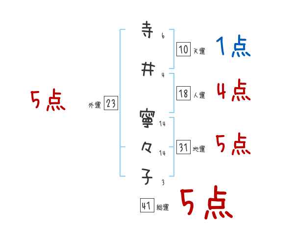 寺井寧々子さんの画数の鑑定結果