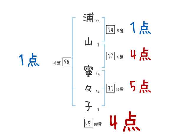外運![]() | 浦山寧々子さんの外運は28画の1つ星!家庭環境に注意。スポーツで活躍できる能力があるかも。 生活面を象徴する運勢です。外部から受ける影響力を表し、結婚運、家庭運や職場、環境への順応性を表します。 |