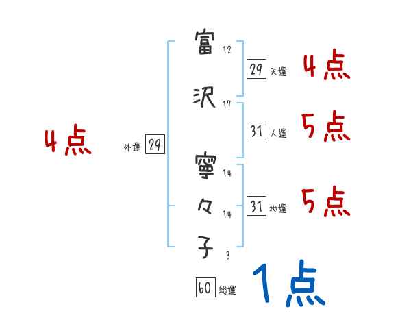 富沢寧々子さんの画数の鑑定結果
