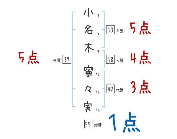 外運![]() | 小名木寧々実さんの外運は37画の5つ星!努力家で順応性に優れる。現実的な考え方ができ忠実に物事をこなす。 生活面を象徴する運勢です。外部から受ける影響力を表し、結婚運、家庭運や職場、環境への順応性を表します。 |