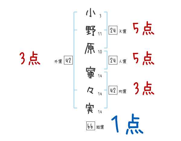 小野原寧々実さんの画数の鑑定結果