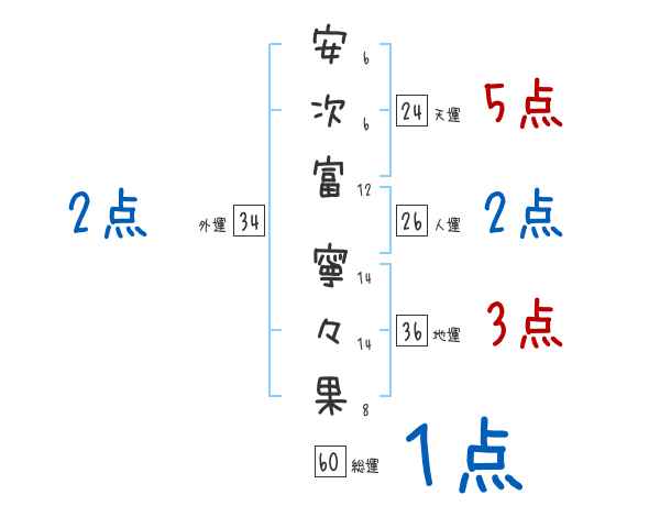 他にも占いサイトは数多くありますが、占い師や流派によって、字画の数え方運勢の吉凶が異なり、当サイトで運勢が良くなくても、他のサイトで良い運勢が出ることがあります。