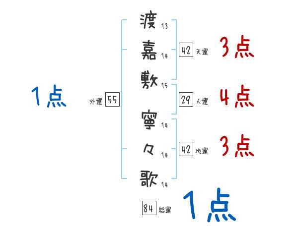 渡嘉敷寧々歌さんの画数の鑑定結果