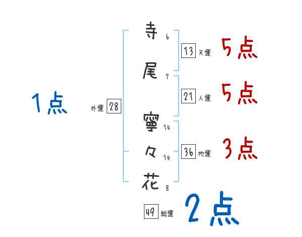寺尾寧々花さんの画数の鑑定結果