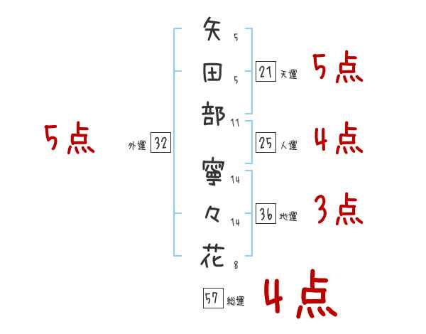 矢田部寧々花さんの画数の鑑定結果