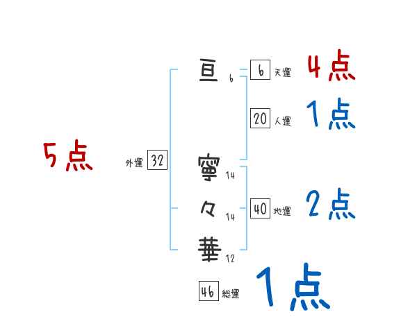 外運![]() | 亘寧々華さんの外運は32画の5つ星!柔軟性があり成功する。チャンスが多く金運が良い。 生活面を象徴する運勢です。外部から受ける影響力を表し、結婚運、家庭運や職場、環境への順応性を表します。 |