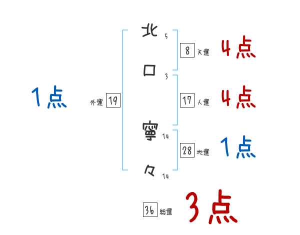 外運![]() | 北口寧々さんの外運は19画の1つ星!優れた才能を持ちますが、協調性が足りないことも。周りの人と協力する事を意識しましょう。 生活面を象徴する運勢です。外部から受ける影響力を表し、結婚運、家庭運や職場、環境への順応性を表します。 |