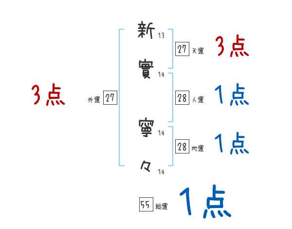 新實寧々さんの画数の鑑定結果