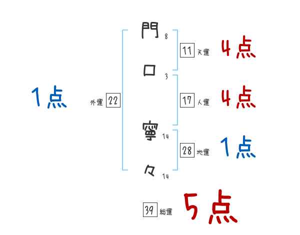 門口寧々さんの画数の鑑定結果