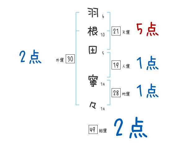 羽根田寧々さんの画数の鑑定結果