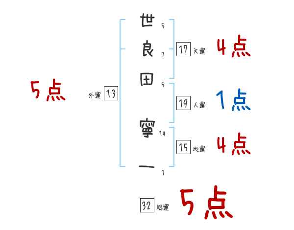 総運![]() | 世良田寧一さんの総運は32画の5つ星!柔軟性があり成功する。チャンスが多く金運が良い。 あなたの人生を表す1番重要な運勢です。生涯を通じて影響する総合運となり、主に50歳以降の晩年期に影響を及ぼします。 |