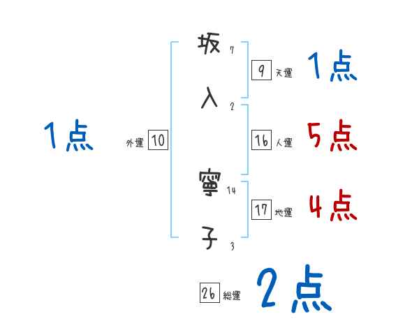 坂入寧子さんの画数の鑑定結果