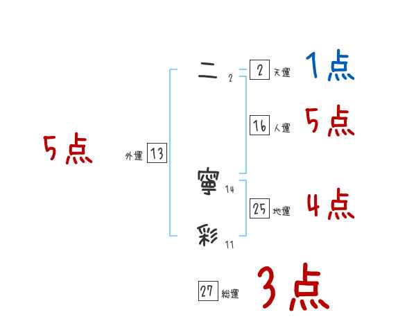 二寧彩さんの画数の鑑定結果