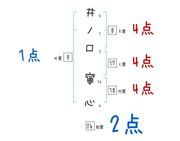 総運![]() | 井ノ口寧心さんの総運は26画の2つ星!波瀾万丈かも。信頼できる人を大事にしましょう。 あなたの人生を表す1番重要な運勢です。生涯を通じて影響する総合運となり、主に50歳以降の晩年期に影響を及ぼします。 |