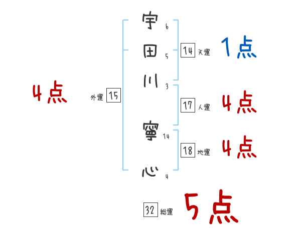 宇田川寧心さんの画数の鑑定結果