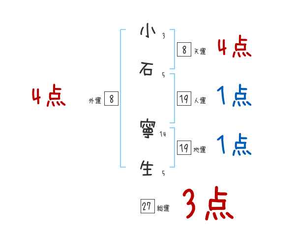 小石寧生さんの画数の鑑定結果