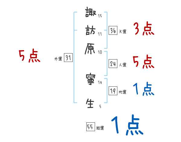 諏訪原寧生さんの画数の鑑定結果