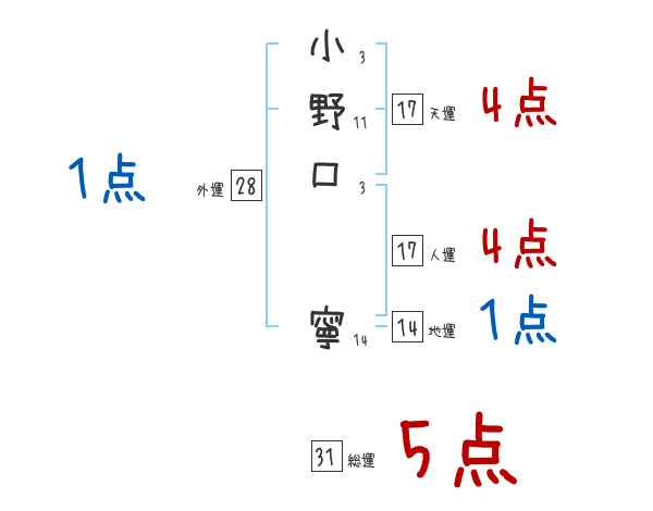 小野口寧さんの画数の鑑定結果