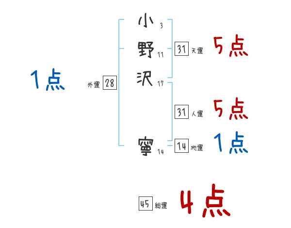 外運![]() | 小野沢寧さんの外運は28画の1つ星!家庭環境に注意。スポーツで活躍できる能力があるかも。 生活面を象徴する運勢です。外部から受ける影響力を表し、結婚運、家庭運や職場、環境への順応性を表します。 |