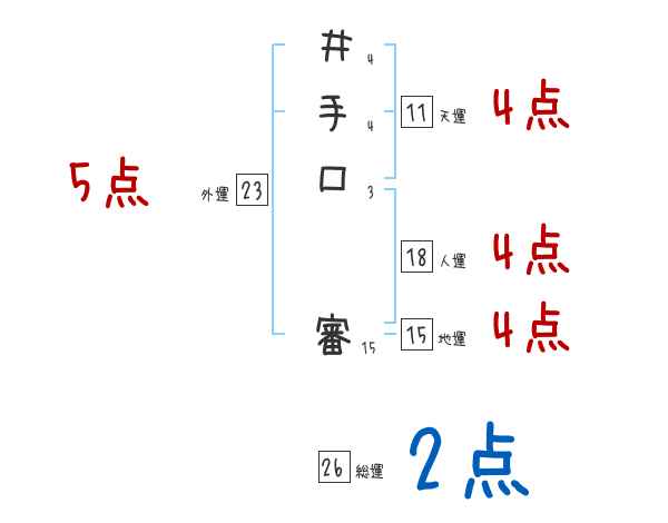 井手口審さんの画数の鑑定結果