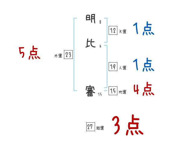 明比審さんの画数の鑑定結果