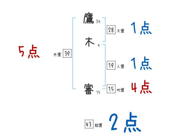 鷹木審さんの画数の鑑定結果