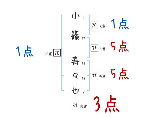 小篠寿々也さんの画数の鑑定結果