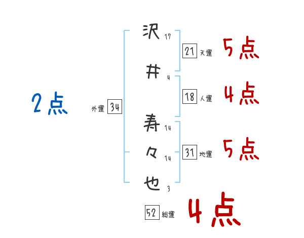 沢井寿々也さんの画数の鑑定結果