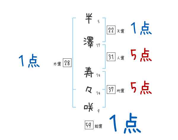 外運![]() | 半澤寿々咲さんの外運は28画の1つ星!家庭環境に注意。スポーツで活躍できる能力があるかも。 生活面を象徴する運勢です。外部から受ける影響力を表し、結婚運、家庭運や職場、環境への順応性を表します。 |