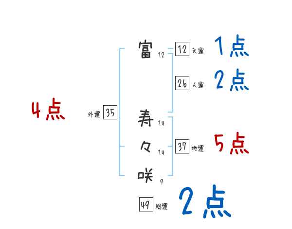 富寿々咲さんの画数の鑑定結果