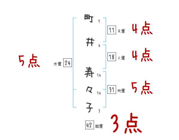 総運![]() | 町井寿々子さんの総運は42画の3つ星!病気に注意。多芸であるが消極的でおとなしい。 あなたの人生を表す1番重要な運勢です。生涯を通じて影響する総合運となり、主に50歳以降の晩年期に影響を及ぼします。 |