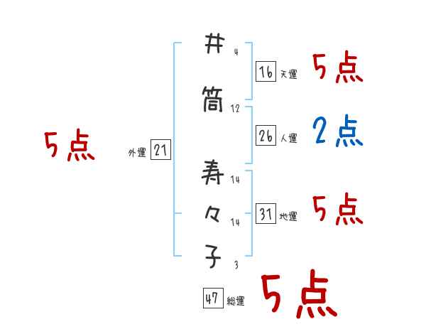 総運![]() | 井筒寿々子さんの総運は47画の5つ星!実力が開花し発展する円満な人生。財に恵まれる。 あなたの人生を表す1番重要な運勢です。生涯を通じて影響する総合運となり、主に50歳以降の晩年期に影響を及ぼします。 |
