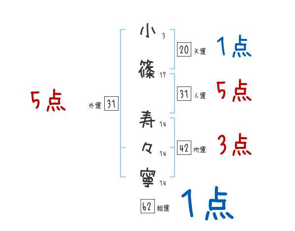 家系が持つ宿命的な運勢を表します。祖先から受け継いだ苗字ですので自分の力が及びません。家柄を象徴します。