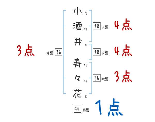 総運![]() | 小酒井寿々花さんの総運は54画の1つ星!トラブルが多いかも。周りをよく見て協調して過ごしましょう。 あなたの人生を表す1番重要な運勢です。生涯を通じて影響する総合運となり、主に50歳以降の晩年期に影響を及ぼします。 |