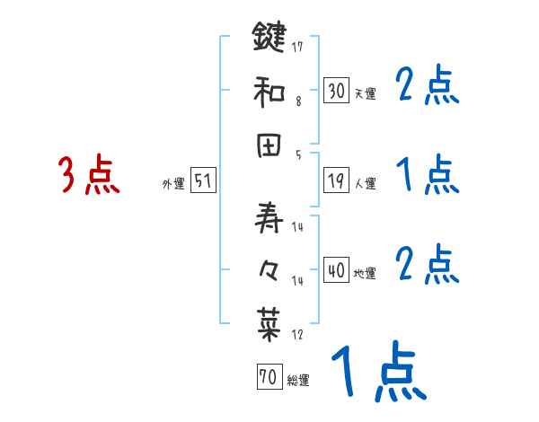 鍵和田寿々菜さんの画数の鑑定結果