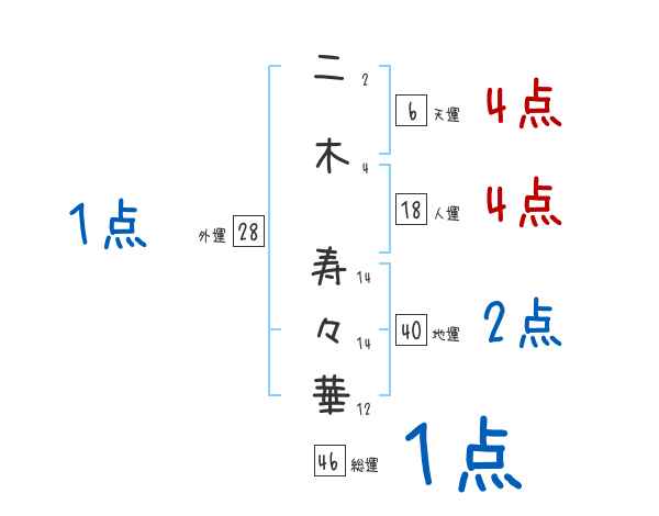 人運![]() | 二木寿々華さんの人運は18画の4つ星!情熱的で剛気。忍耐力があり信頼される。 性格や才能などを表す2番目に重要な運勢です。人間関係や協調性、社会的な成功に影響します。主に20歳から50歳ぐらいまでの中年期の運勢を表します。 |