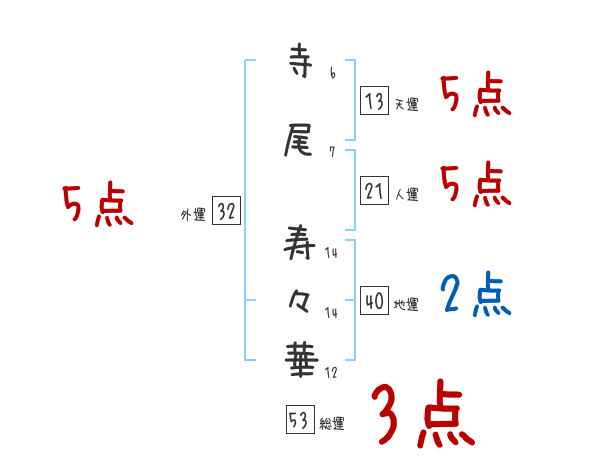 寺尾寿々華さんの画数の鑑定結果