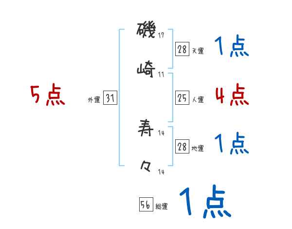 磯崎寿々さんの画数の鑑定結果