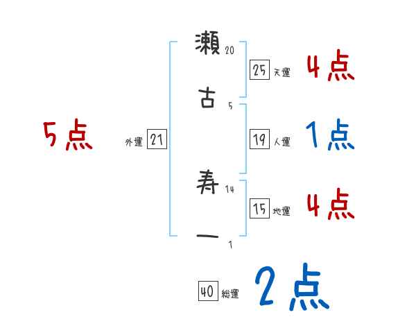 瀬古寿一さんの画数の鑑定結果