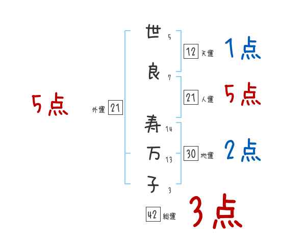 人運![]() | 世良寿万子さんの人運は21画の5つ星!統率力がある。独立し成功する。名誉を手に入れる。 性格や才能などを表す2番目に重要な運勢です。人間関係や協調性、社会的な成功に影響します。主に20歳から50歳ぐらいまでの中年期の運勢を表します。 |
