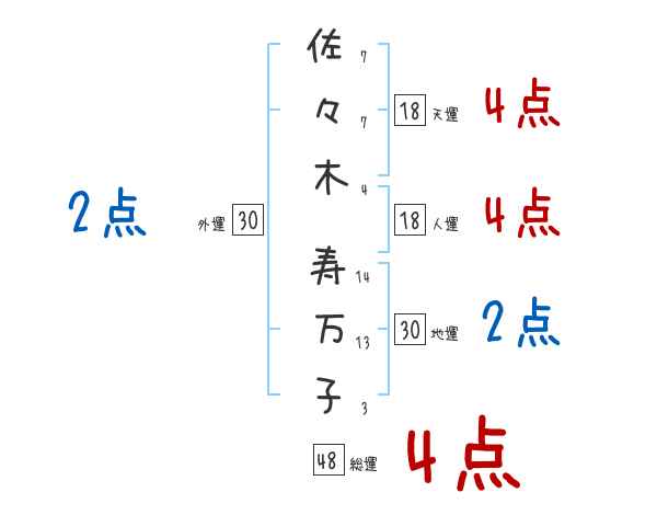 佐々木寿万子さんの画数の鑑定結果
