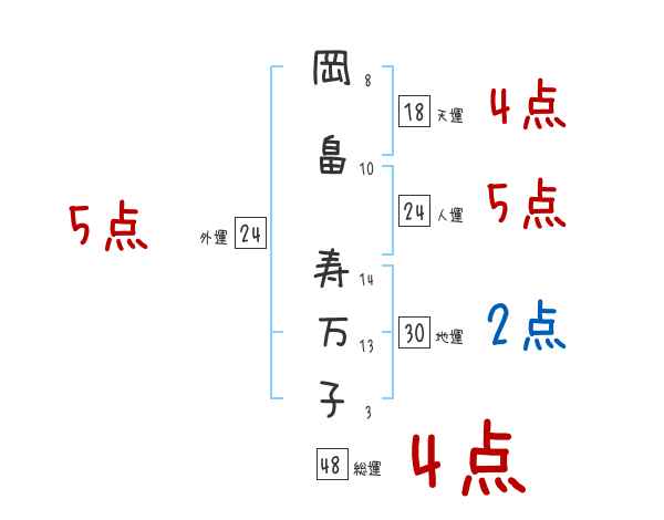 岡畠寿万子さんの画数の鑑定結果