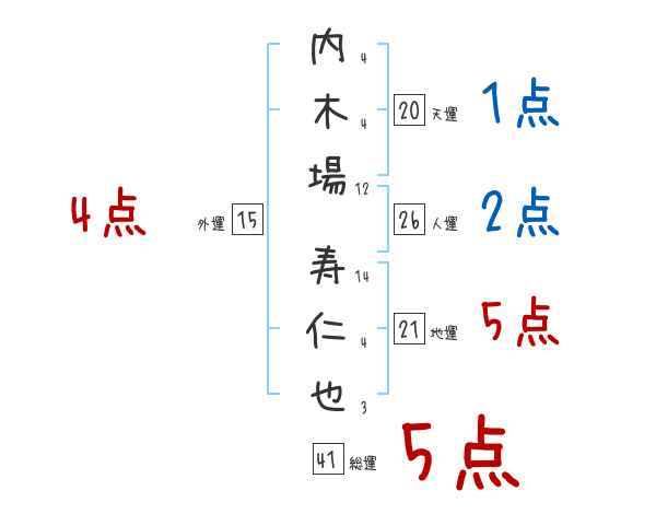 外運![]() | 内木場寿仁也さんの外運は15画の4つ星!人徳があり出世する。順調に物事を進め円満な人生。 生活面を象徴する運勢です。外部から受ける影響力を表し、結婚運、家庭運や職場、環境への順応性を表します。 |