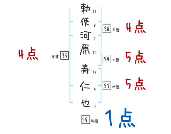 外運![]() | 勅使河原寿仁也さんの外運は35画の4つ星!温厚な性格で感受性が高い。穏和な性格で人望が厚い。 生活面を象徴する運勢です。外部から受ける影響力を表し、結婚運、家庭運や職場、環境への順応性を表します。 |