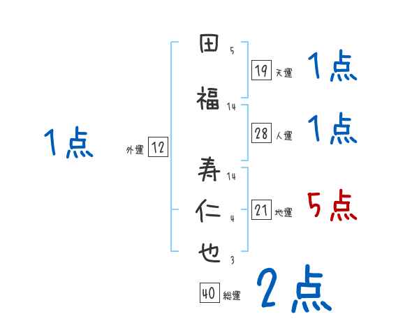 田福寿仁也さんの画数の鑑定結果
