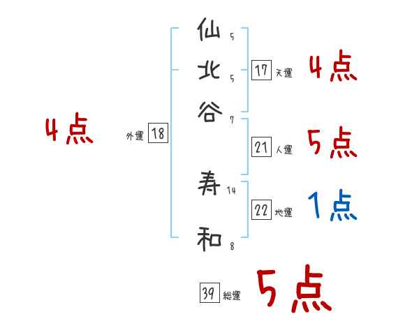 仙北谷寿和さんの画数の鑑定結果