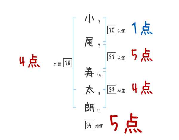 小尾寿太朗さんの画数の鑑定結果