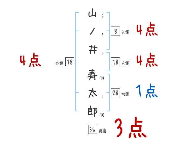 山ノ井寿太郎さんの画数の鑑定結果