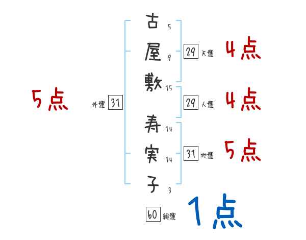 古屋敷寿実子さんの画数の鑑定結果