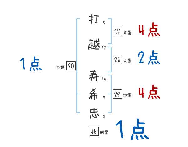 家系が持つ宿命的な運勢を表します。祖先から受け継いだ苗字ですので自分の力が及びません。家柄を象徴します。